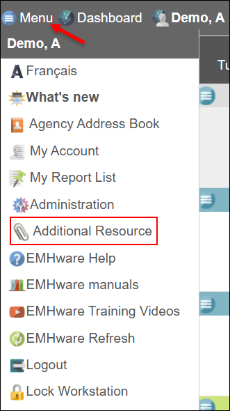 This feature allows your admins to upload a static file for your agency to reference from within EMHware, providing an agency-specific resource in EMHware's user Menu.