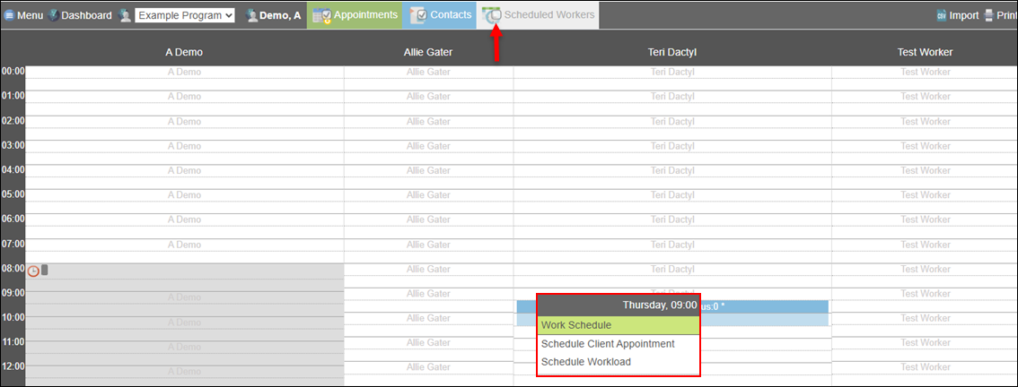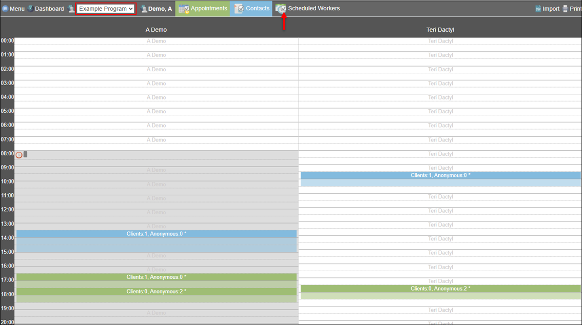 Note: For workers to display on the scheduler for a program, they must be added as a Program Worker to the program in the Program Manager.