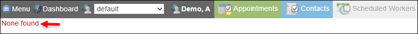 - If no workers are assigned to the program when the Scheduled Workers checkbox is unselected or if selected and no program workers have set work schedules, a "None found" message appears under Menu.