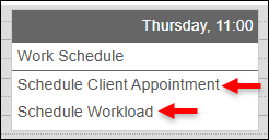 - Select either Schedule Client Appointment or Schedule Workload as applicable.